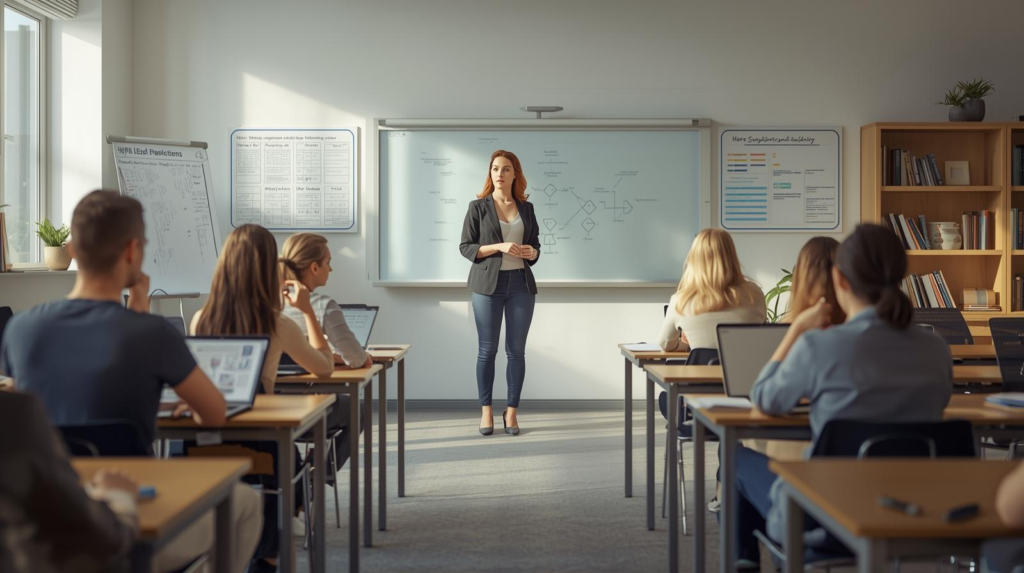Teachers and trainers are people who help others learn new knowledge and skills. They work in schools, Colleges, Training centres and even online platforms. Their role is to explain topics clearly guide students and help them understand difficult ideas. A teacher does more than just give information. They motivate students answer questions and support them when they struggle. Good teachers understand that every student learns in a different way. They adjust their methods to match the needs of the class. Patience clear communication and strong subject knowledge are very important in this profession.
